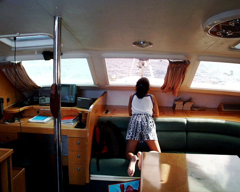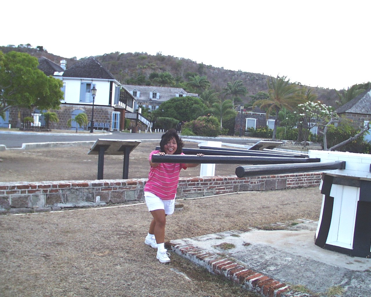 Angela in her new job of winching in boats in Nelsons Dockyard, Antigua